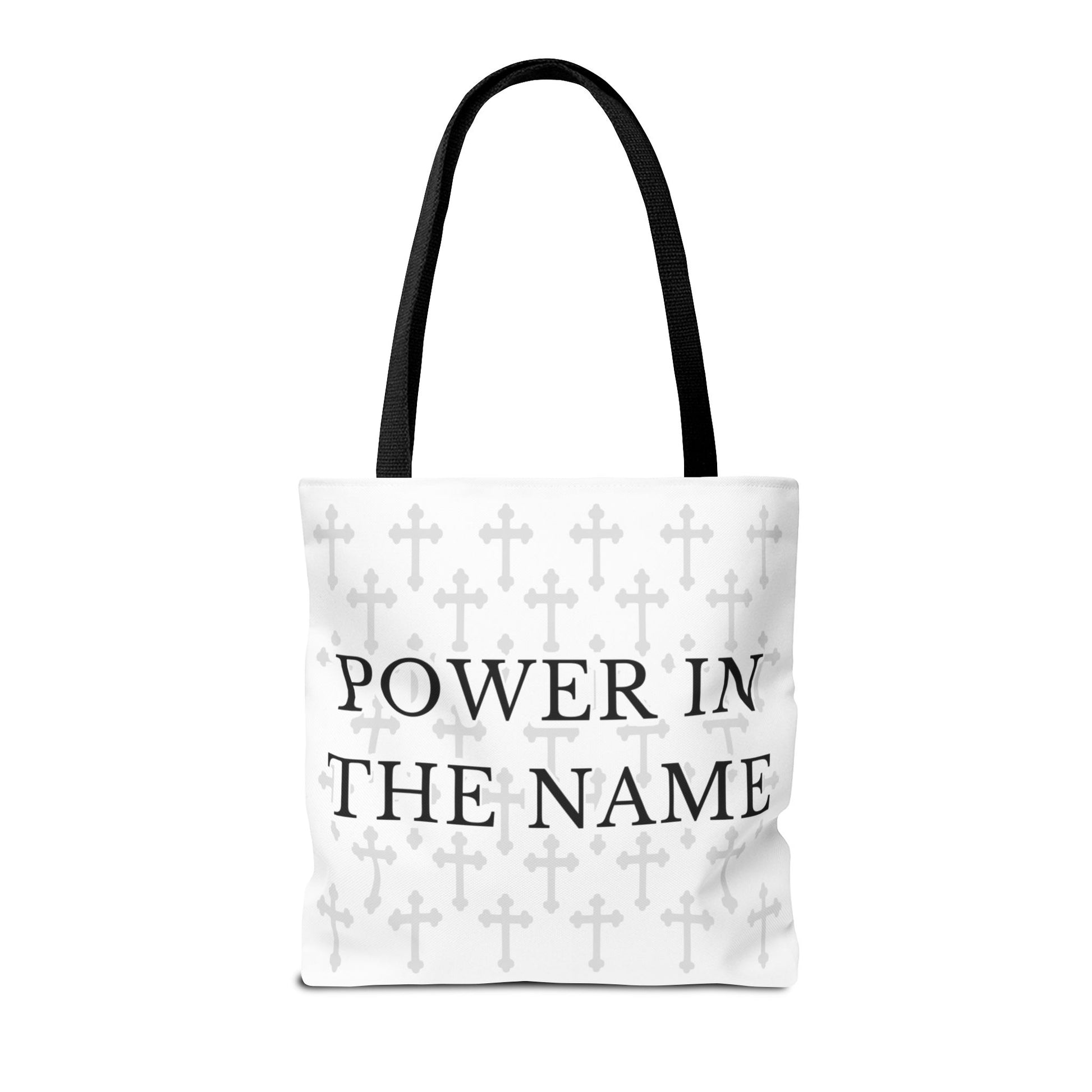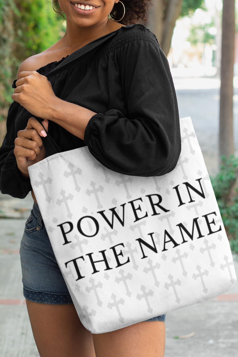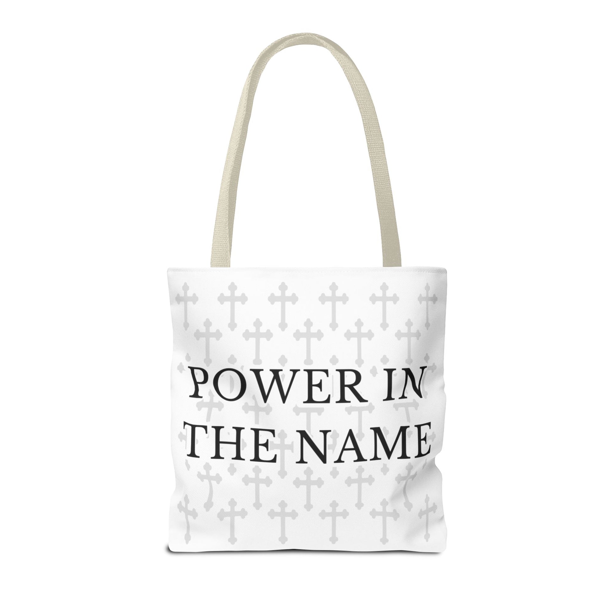 Religious Christian accessory tote bag featuring the names of God in text design. Perfect for everyday use and showing your faith. Ideal for religious individuals looking for a stylish and practical accessory. Relevant for religious holidays and celebrations. Perfect religious gift.